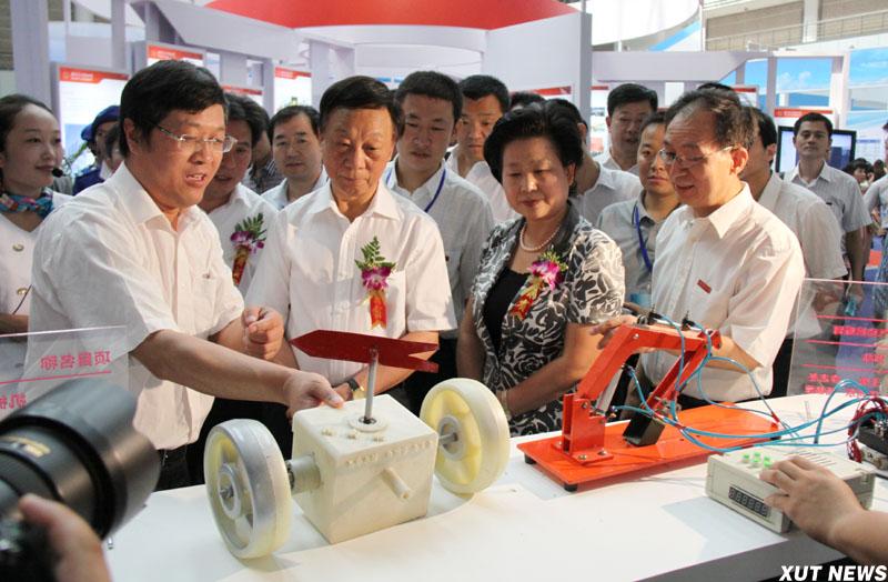 开幕式后,孙清云、朱静芝、杨希文等领导饶有兴趣地参观展览。当来到我校展区时,周孝德书记汇报了我校在大学生创新创业、科学研究等方面取得的成绩。孙清云副书记在听取汇报后,鼓励我校继续发挥自身优势,提高自主创新能力,引导大学生积极开展科技发明,为大学生走出校园自主创业搭建平台,推动创造发明成果转化为现实生产力。