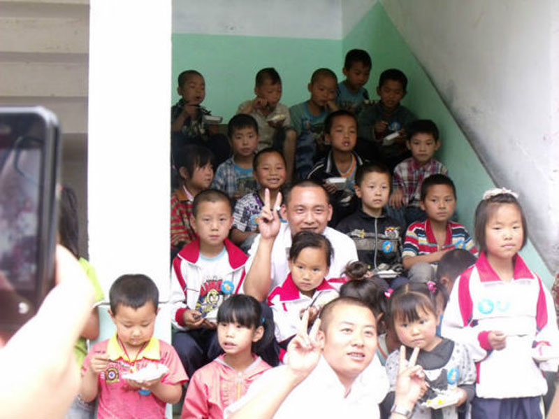 近两个小时的行驶之后,爱心车队到达了此次受助学校——蓝田县小寨乡下焦岱小学。来到教室,孩子们正在写作业。看到志愿者们,他们既是羞涩,又是兴奋,内心的激动溢于言表。经过短暂的沟通交流后,孩子们就和志愿者们一起来到操场玩起了游戏。随后,志愿者们和孩子们回到教室,他们为孩子们准备了精彩的魔术表演,在简陋的教室里教孩子们绘画、说英语、唱歌,讲授急救常识,并给他们赠送了新的学习用品。学校里的很多小学生没有跟在外地打工的父母一起庆祝过生日,工作人员和志愿者们集体打开了由西安新果士食品精心准备的生日蛋糕,为全校67名学生庆祝集体生日,孩子们都在生日蛋糕面前许下了自己的心愿。