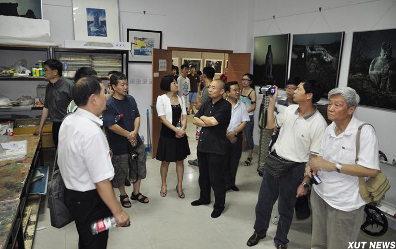 贺延光、王文澜一行在参观中对我校学生的作品表示赞赏,他们说,我校学生的作品具有很强的感染力和震撼力,让人很受震动。通过作品,可以看出他们思想新锐,理念超前,对生活也有深刻的领悟力,他们的作品表现丝毫不逊色于著名艺术院校的学生。