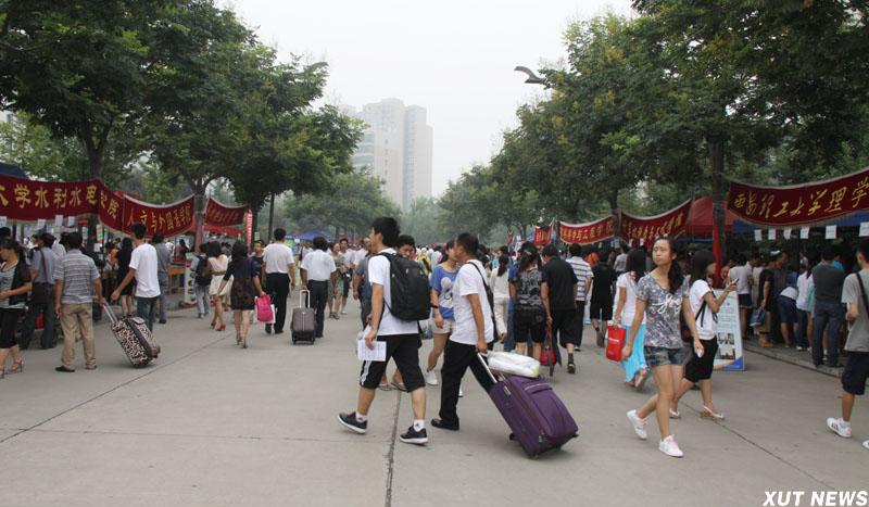我校2012级本科新生报到工作于8月11、12日两天在曲江校区进行。校园内彩旗飘扬,人头攒动,随处可见的迎新标语将校园装扮得格外美丽,整个校园生机勃勃。在为期两天的工作中,我校各学院、各单位既各司其职又相互协作,确保每个新生顺利、安全、满意地入学。截至8月12日下午6时,绝大多数新同学已经顺利办理了报到手续,新生报到工作圆满结束。