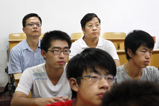 校党委书记周孝德(后排右一)在听课