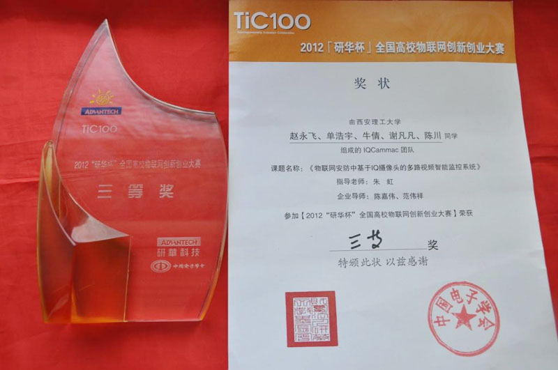 本报讯 8月25日,由中国电子学会以及研华科技联合主办,研华文教基金会承办,中国电子学会物联网专家委员会协办的2012“研华杯”高校物联网创新创业大赛决赛在北京圆满落幕。由西安理工大学自动化与信息工程学院朱虹老师指导,赵永飞、单浩宇、牛倩、谢凡凡和陈川5位同学组成的参赛队经过激烈角逐,最终获得全国三等奖。