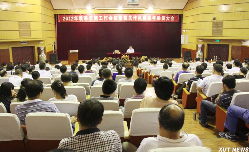 9月5日下午,我校在图书馆报告厅召开2012年秋季学期工作会议暨机关作风建设年动员大会,校党委书记周孝德总结我校春季学期工作并对秋季学期工作提出了要求,校长刘丁安排部署秋季学期主要工作,党委副书记、纪委书记傅有明就机关作风建设活动作动员讲话。会议由副校长张淼丰主持。