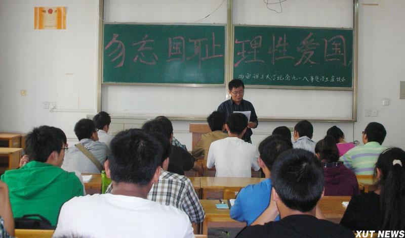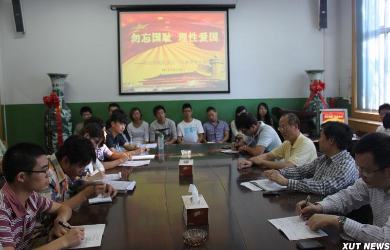9月18日,我校组织召开了以“勿忘国耻·理性爱国”为主题的纪念“九一八”事变81周年学生代表座谈会,全校500余名学生代表参加座谈会。座谈会上,部分学院领导、老师和同学们一起回顾了81年前中华民族的苦难历史,畅谈了对当前钓鱼岛事件的看法,表达了浓浓的爱国情怀。