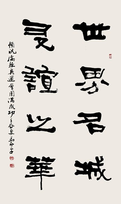 这次本报记者转赠的是西安书法家马西平和晨曦的作品。马西平创作的是一幅“世界名城,友谊之华”的书法作品,这八个大字顿挫有致,浑厚典雅,气韵生动。马西平通过越洋电话告诉记者,他写这幅字就是为了让晚报记者把西安人民的友谊带到伦敦。“因为西安和伦敦都是世界文化版图上重要的历史名城,这两座城市能够集中代表东西方文化的精华。”本报记者转赠给大英博物馆的另一件作品是西安民间艺术家晨曦精心创作的工艺筷子。喜庆吉祥的红色锦盒里面,是三双适合外国朋友使用的连体筷,筷子是仿象牙材质的,通体洁白,筷身上还刻有他自己撰写的陕西特色的诗词。锦盒一侧写着“民以食为天,食是筷为先”。说到自己的礼物,晨曦曾十分自豪地告诉记者:“我的礼物可是获过国家专利的,这份礼物最具有地域特色,充分地体现了咱陕西关中地区的风土人情,我相信英国朋友一定会很喜欢。”