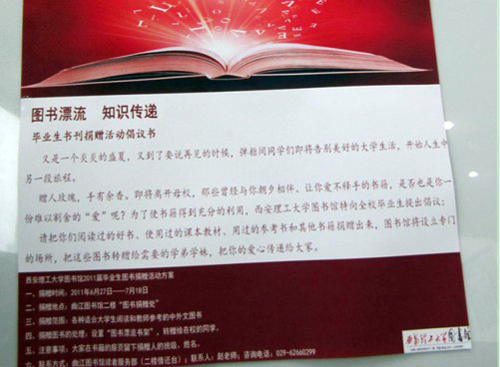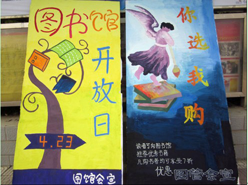 据悉,在“4.23世界读书日”前后,图书馆举办了一系列文化活动,包括8场专业资源检索与利用技巧讲座,“我眼中的图书馆”视频、图片作品征集,分享书籍、分享知识书刊共享平台——图书漂流,温馨的心灵交流渠道——心愿树,图书馆开放日——走进图书馆台前幕后,优秀中外文图书展销,优秀记录片展映,“建言献策”——图书馆 我想对你说,图书馆温馨提示语和温馨提示语标牌设计方案有奖征集,校老年书画学会书画展,阅读的足迹——“阅读之星”评选等。