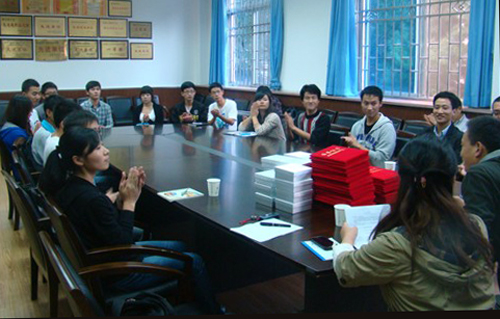 本报讯 9月26日下午,2012年世界读书日系列活动获奖读者座谈会在金花图书馆一楼会议室举行。图书馆任伟副馆长,读者服务部张小宇主任、赵立宏主任,信息技术部王海萍主任,读者服务部黄涛,以及20余名获奖读者参加了座谈。