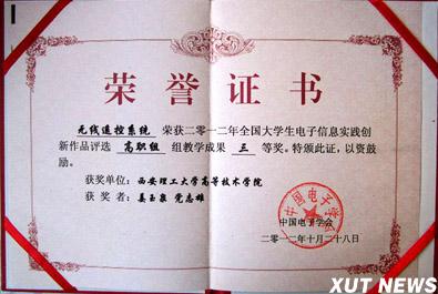第三届全国高校电子信息实践创新作品评选于近日在北京举行,由我校高等技术学院学生提交的“光伏系统”和“无线遥控系统”两个作品经过激烈角逐,进入决赛,并最终荣获全国三等奖2项。