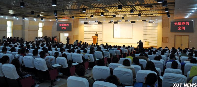 2012中国环境设计学年奖“光演绎的空间”西安论坛于11月17——18日在我校曲江校区图书馆报告厅举行。我校艺术与设计学院院长吉晓民、三雄极光照明股份有限公司专业交流中心经理邓晴方致辞。中国环境设计学年奖组委会秘书长姚领介绍论坛相关情况。