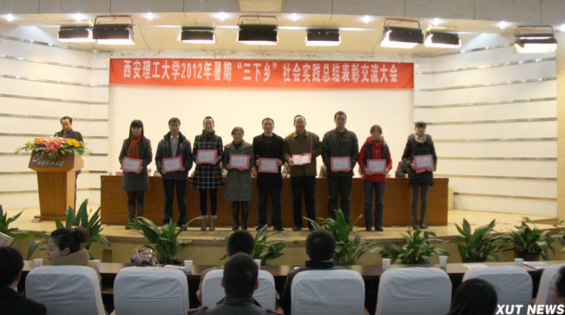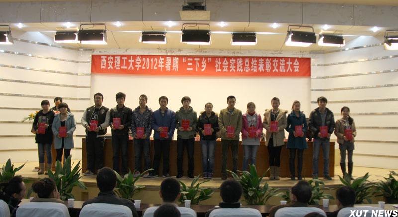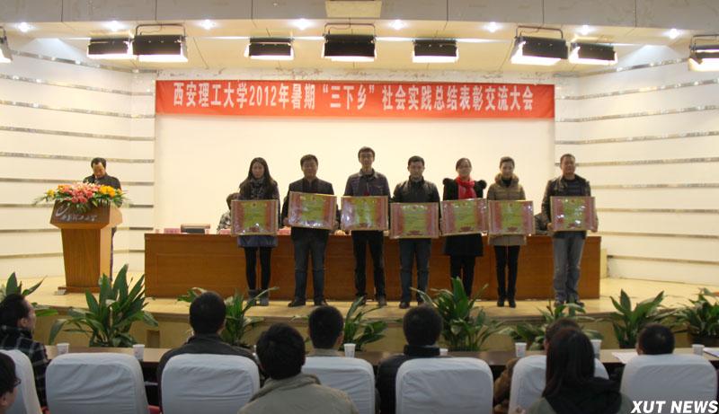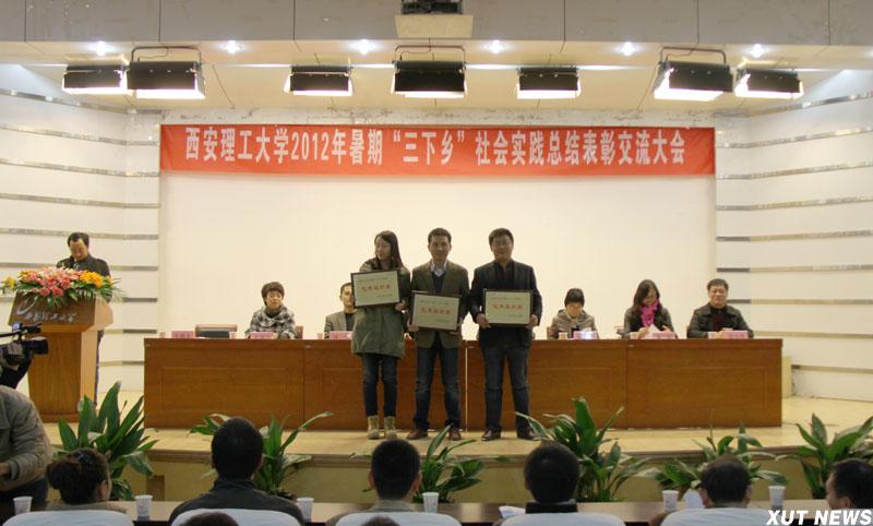 11月22日,西安理工大学2012年暑期“三下乡”社会实践总结表彰交流大会在曲江校区举行。校党委副书记、纪委书记傅有明,副校长李言出席了表彰大会。