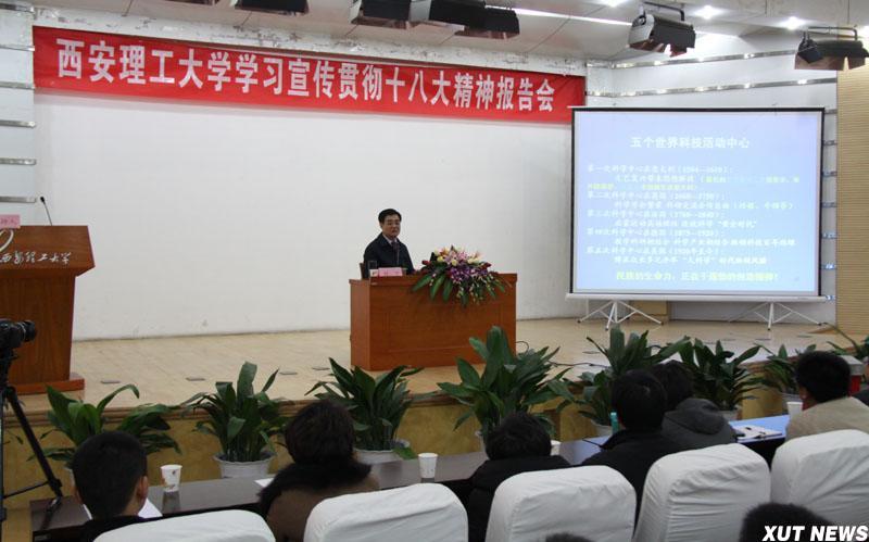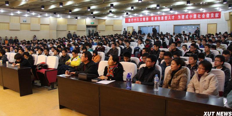 11月27日晚,我校首场十八大精神宣讲报告在曲江校区报告厅拉开帷幕,校长刘丁受邀为400多名师生作了题为《科技创新是强国之路》的宣讲报告,受到师生欢迎。