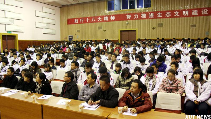 12月6日晚,我校学习宣传贯彻十八大精神报告会在金花校区图书馆报告厅举行第二场专题辅导,校党委书记周孝德受邀为广大师生作了题为《践行党的十八大精神,努力推进生态文明建设》的报告,他以环境学科专家的身份,结合自身研究,为广大师生深入解析了当前世界环境保护领域的发展现状,以及我国目前生态环境面临的严峻形势和发展对策,受到师生欢迎。
