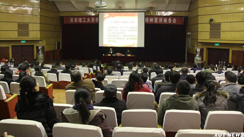 校领导及科级以上干部、教工党支部书记、全体辅导员、我校十八大精神宣讲团成员300余人聆听了报告。