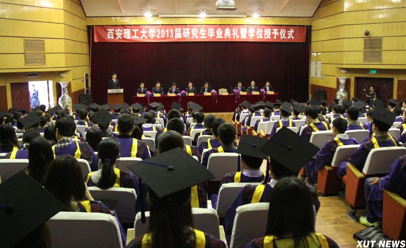 西安理工大学2013届研究生毕业典礼暨学位授予仪式于4月12日上午在金花校区图书馆报告厅隆重举行。西安理工大学党委书记周孝德,校长刘丁,校党委副书记、纪委书记傅有明,副校长刘凯、张淼丰、李言、刘军、许云华,总会计师赵明扬出席了毕业典礼。毕业典礼暨学位授予仪式由刘凯副校长主持。