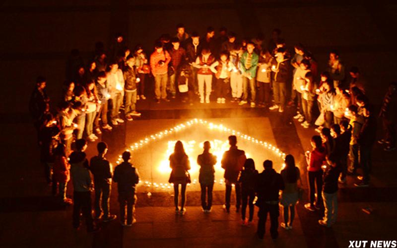 4月21日晚,为雅安祈福活动开始。面对“心”型蜡烛,同学们双眼凝视着烛光,默默祈福,表达对雅安灾区人民的祝福与牵挂。他们用笔在宣传板上写下了自己的心语:“大爱中国情系雅安”、“雅安不哭,我们一直和你们在一起”、“雅安,祝你平安”……这些温暖的话语是理工大学子对雅安同胞的关怀与祝福!