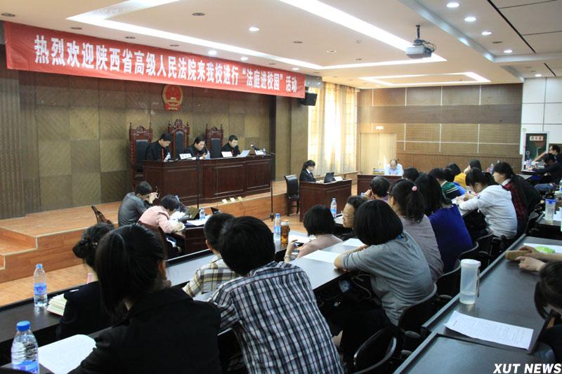 受西安理工大学邀请,陕西省高级人民法院民事审判一厅于近日在我校模拟法庭开展了“法庭进校园”活动。法律系相关教师、法律系全体学生及众多法律爱好者旁听了此案的审理。