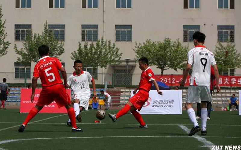 由中国大学生体育协会、中国足球协会主办,中国大学生体育协会足球分会、陕西省学生体育协会协办,西安理工大学承办的2012——2013年“特步”中国大学生五人制足球联赛(陕西赛区)比赛于日前在我校曲江校区落下帷幕。