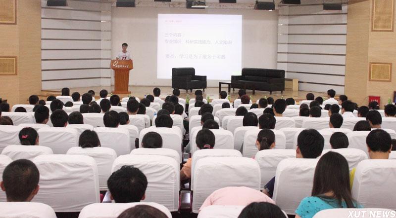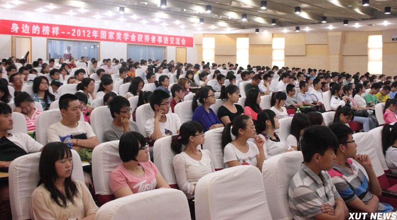 这是西安理工大学举办的首届“身边的榜样—2012年国家奖学金获得者事迹交流会”。交流会以获得国家奖学金的同学为榜样,通过演讲和访谈的形式,宣传他们的先进事迹和学习经验,为广大学生树立榜样,弘扬奋发向上、努力进取的精神,使广大学子度过更充实更精彩的大学生活。