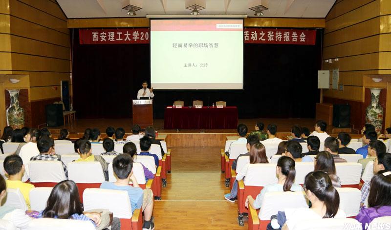 为更好地促进学校就业工作,进一步提高学生对就业的认识,增强就业针对性。5月30日,学校邀请到了陕西广播电视台职场节目《张持有道》的节目主持人张持为我校300余名学生进行了一场题为“轻而易举的职场智慧”的就业报告会。