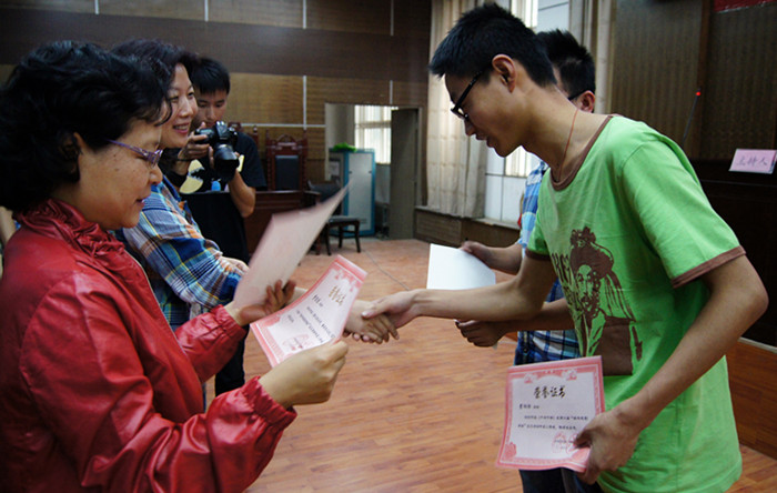 校报记者团副团长马曦宣布获奖名单,许部长、魏老师为获得一、二等奖的学生颁发了获奖证书。