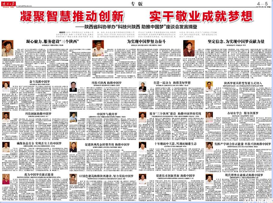 获得“全国优秀科技工作者”、“中国科协求是杰出青年成果转化奖”和“陕西青年科技奖”的优秀科技工作者代表等60余人参加了座谈会。陕西日报做了专版报道。