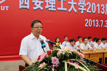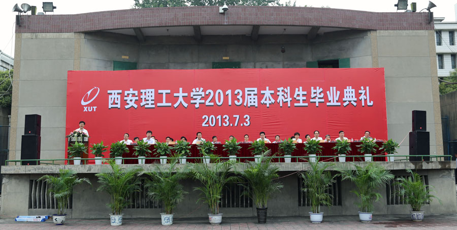 7月3日,西安理工大学2013届本科生毕业典礼在金花校区运动场隆重举行。校长刘丁,党委副书记刘凯、崔亦国,纪委书记李建竹,副校长李言、刘军、许云华等校领导出席了典礼。海军选培办、各学院、主要职能处室负责人和全体毕业生及部分毕业生家长参加了毕业典礼。毕业典礼由副校长张淼丰主持。