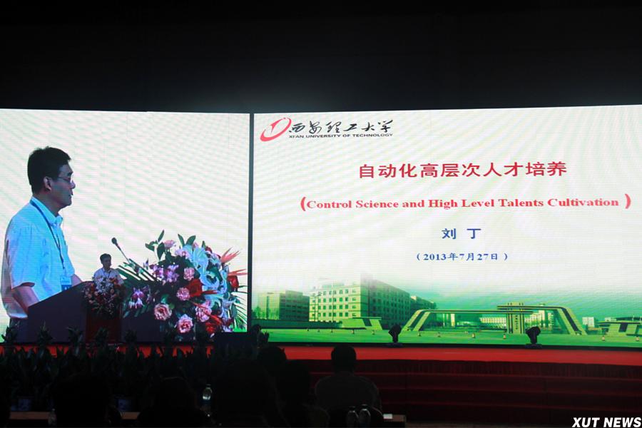第32届中国控制会议(The 32nd Chinese Control Conference,CCC2013)7月25--28日在西安绿地笔克国际会展中心举行。西安理工大学校长刘丁教授作为大会组织委员会主席出席了开幕式,做了题为“自动化高层次人才培养”的报告,并主持了大会特邀嘉宾徐德民院士的报告会。