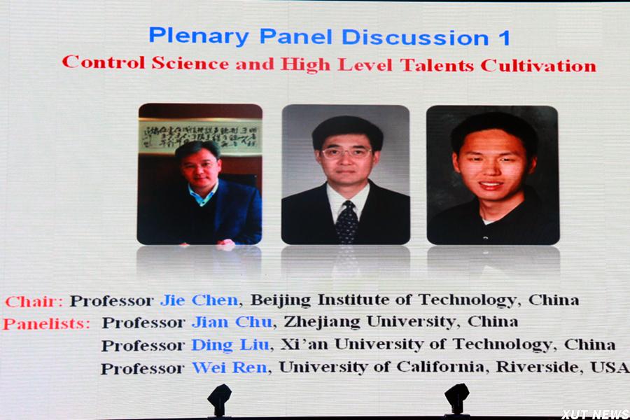 我校刘丁教授与浙江大学褚健教授、美国加州大学任伟教授一起,同大会代表一起探讨了自动化的未来发展方向、人才培养体系的改革、科研与就业、工作的关系等深层次问题,引起了大家的广泛关注和浓厚兴趣。会前专题讲座上,我校张友民教授做了题为“Research and Development on Fault Diagnosis, Fault-Tolerant and Cooperative Control with Application toManned and