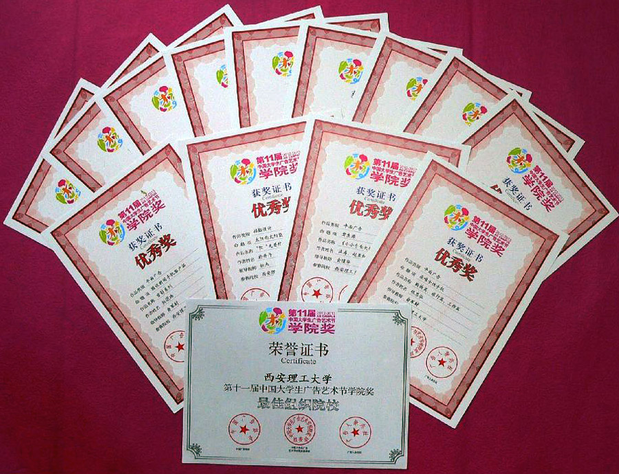 第十一届中国大学生广告艺术节学院奖颁奖礼日前落幕,我校在大赛中共获54个奖项,并获得“最佳组织院校奖”,创我校参加该项大赛的最好记录。