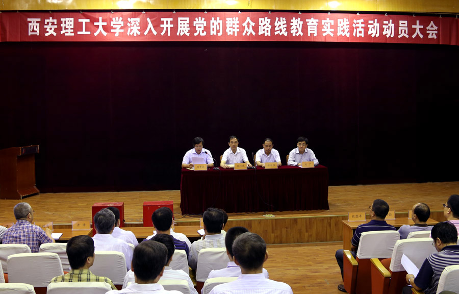 9月20日上午,西安理工大学党的群众路线教育实践活动动员大会在金花校区图书馆报告厅召开。陕西省属高校教育实践活动第二督导组组长、省人大常委会委员、教育科学文化卫生委员会副主任委员牟怀岐,副组长、省教育厅副巡视员张长保,与我校党委书记周孝德、校长刘丁出席动员会并在主席台就座,督导组成员井浩、王德忠、周涛出席大会。