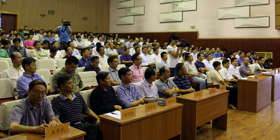 周孝德书记主持大会,并作动员讲话。他说,开展党的群众路线教育实践活动是实现十八大确定的奋斗目标的必然要求,是建设高等教育强国、办好人民满意教育的现实需要,是推进学校事业发展、实现国内一流教学研究型大学目标的迫切要求,我校群众路线教育实践活动的主题就是”践行群众路线,汇聚发展力量,推动内涵建设“。他要求全校广大党员干部要深刻领会开展党的群众路线教育实践活动的重大意义,切实把思想和行动统一到中央的决策部署上来,要聚焦“四风”问题,切实推动校风学风、师德师风和干部作风转变。