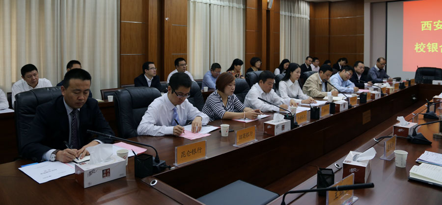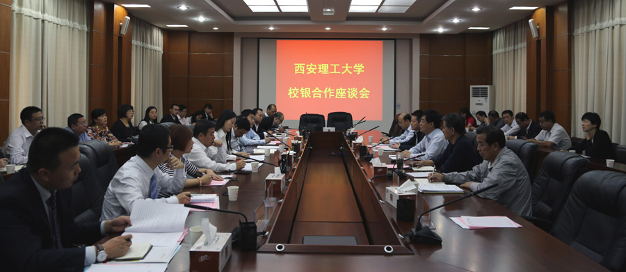 西安理工大学校银合作座谈会9月28日在金花校区101会议室举行,校长刘丁、总会计师赵明扬与应邀出席座谈会的工商银行、中国银行、建设银行、农业银行、交通银行、西安银行、浦发银行、招商银行、昆仑银行、华夏银行等共10家银行陕西机构负责人进行了座谈,共商校银合作相关事项。