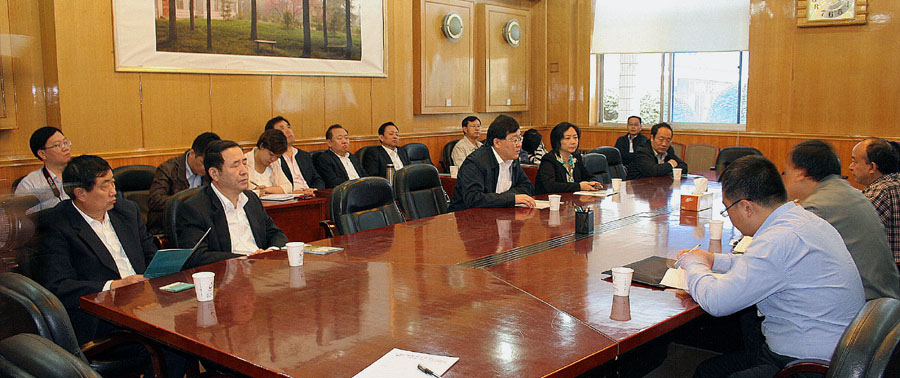 罗兴锜副校长在会上讲话,对王市长一行的来访表示热烈的欢迎,并简要介绍了学校的历史沿革与科学研究现状。