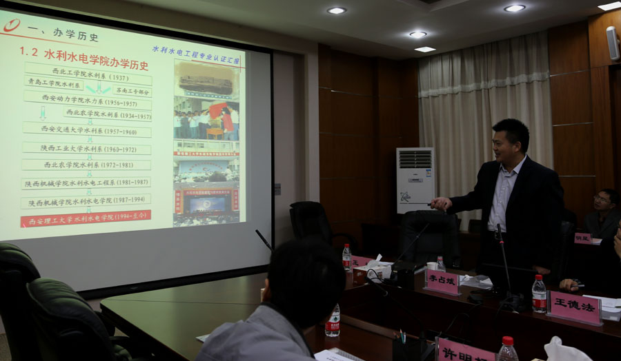 会议由专家组组长吕明治总工程师主持,他就此次专业认证工作做了具体安排。我校水利水电学院李占斌院长从水利水电工程专业历史、办学特色、师资力量、人才培养、社会评价、科研成果等方面向专家组做了汇报。专家组与水利水电工程系负责人、教务处、实验室管理处、图书馆、学生处、校团委等相关部门负责人进行了座谈。