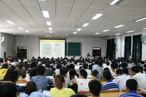 培训会专门邀请大赛协办单位——安吉加凯家具有限公司李铭副总经理及西安理工大学钦松老师就“办公椅”设计中的发展趋势、产品特点及设计经验向参会师生做了讲解,着重介绍了概念设计与产品设计的特点和区别,引导学生的设计向实用化发展。培训中心,老师和学生进行了积极的互动,就关心的问题进行了热烈探讨。本次培训内容生动详实、紧贴设计实际,得到了参会师生的普遍欢迎,取得了良好效果。