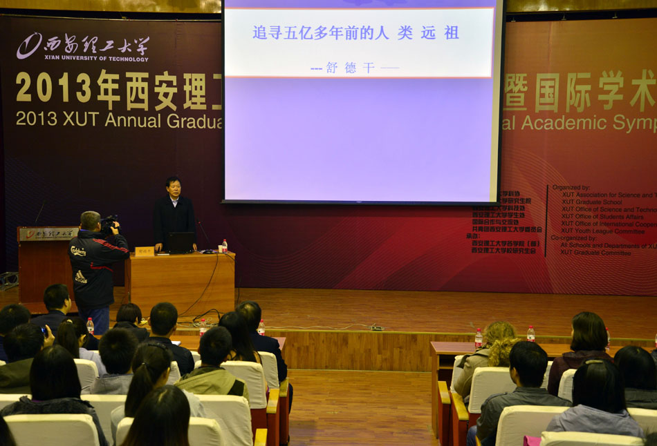 会后,中国科学院院士舒德干教授做了题为《追寻五亿多年前的人类远祖》的专题报告,他报告中结合自己的研究工作,给大家系统介绍了进化古生物学领域的重大科研成果,后口动物亚界演化成型和脊椎动物实证起源假说以及三幕式寒武大爆发假说。报告结束后,舒院士与学生进行了深入讨论交流。舒院士精彩的报告不仅使大家了解人类进化过程,领悟到科学研究与人类文明进步的相互关系,而且体会到舒院士谦逊的人格魅力,及其热爱事业,执着追求生命真谛和善于论证推演、多维度思考问题的科学创新精神,为在场研究生留下深刻的印象,会场掌声雷动,久久不歇。