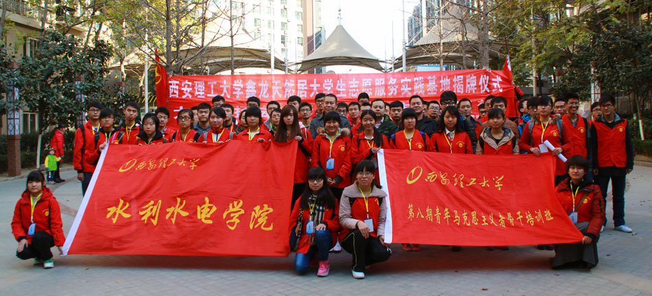 12月5日是第28个国际志愿者日,西安理工大学“青春志愿行 共筑中国梦”社区服务主题活动暨大学生志愿服务基地、青年马克思主义者实践基地揭牌仪式在鑫龙天然居社区举行。