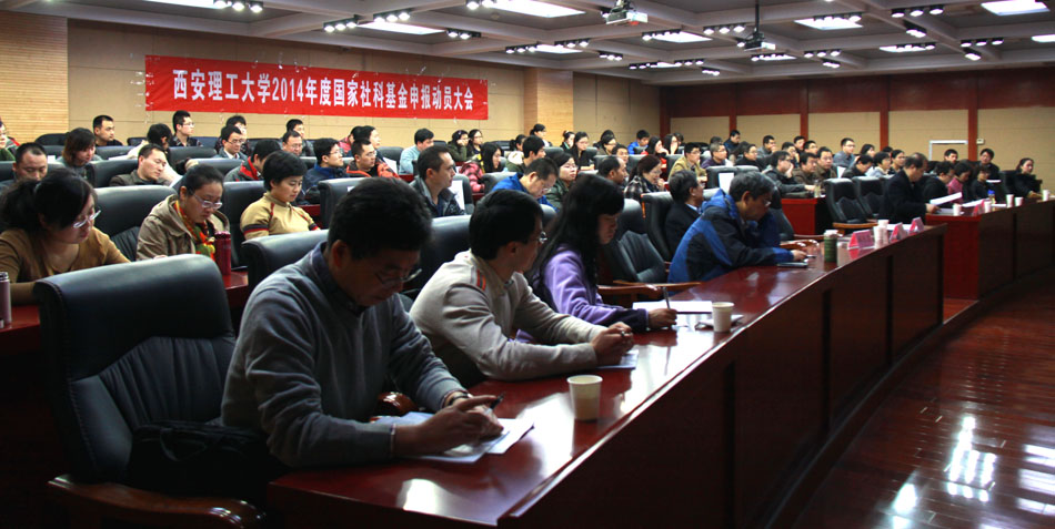 我校2014年度国家社会科学基金申报动员会12月4日下午在教11楼EMBA学术报告厅举行。科技处处长任海鹏通报了我校2013年国家社会科学基金申请与资助的总体情况,并介绍了2014年度学校国家社会科学基金的申报工作计划和时间节点。希望各相关单位和教师要高度重视国家社会科学基金项目的申报工作,提高申报质量。