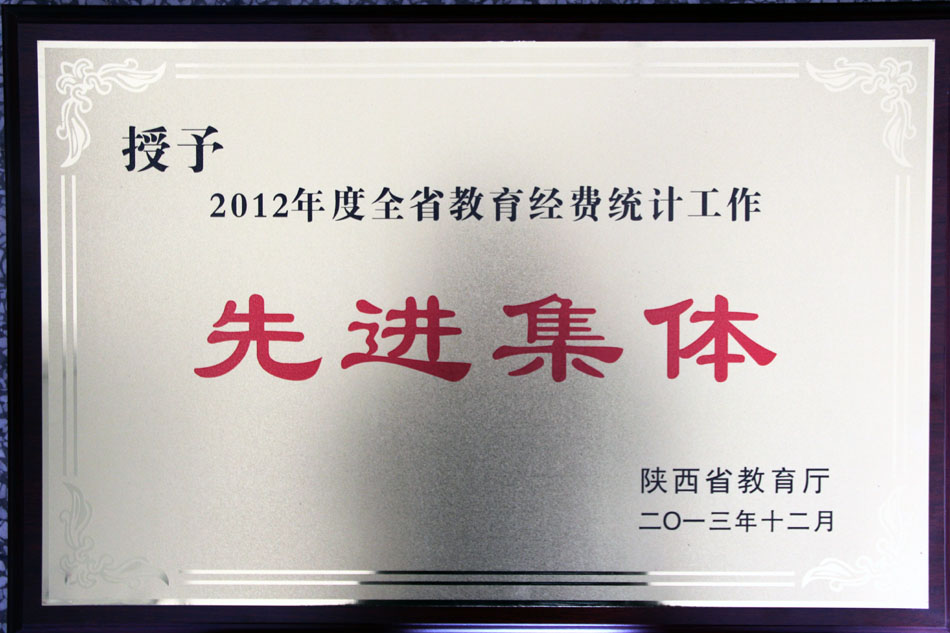 根据陕西省教育厅《关于表彰2012年度全省教育经费统计先进集体和先进个人的通报》(陕教财〔2013〕187号),我校被评为陕西省教育经费统计工作先进集体,林立妍被评为陕西省教育经费统计工作先进个人。