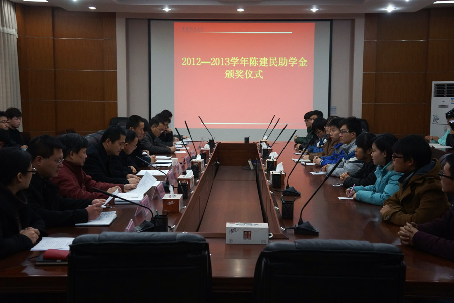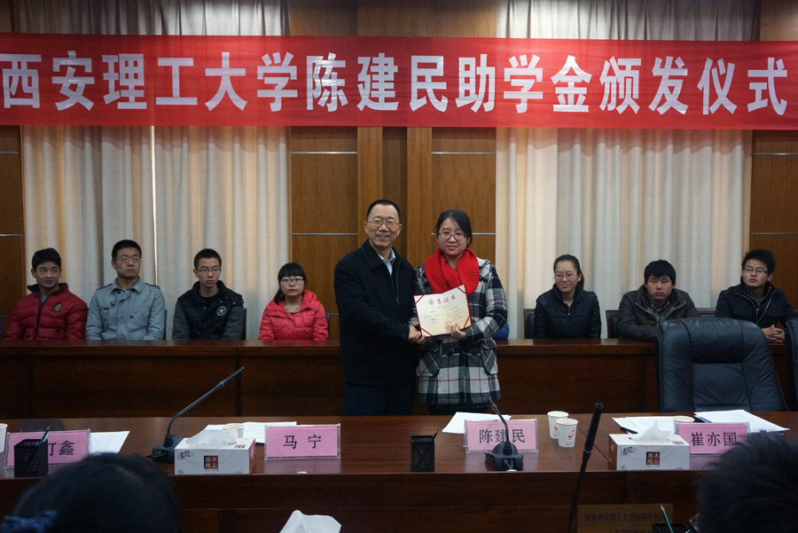 1月6日上午,西安理工大学2012-2013学年陈建民助学金颁发仪式在金花校区101会议室举行。陈建民助学金出资人、中国家用电器研究院副院长陈建民先生,我校党委副书记崔亦国出席颁发仪式。