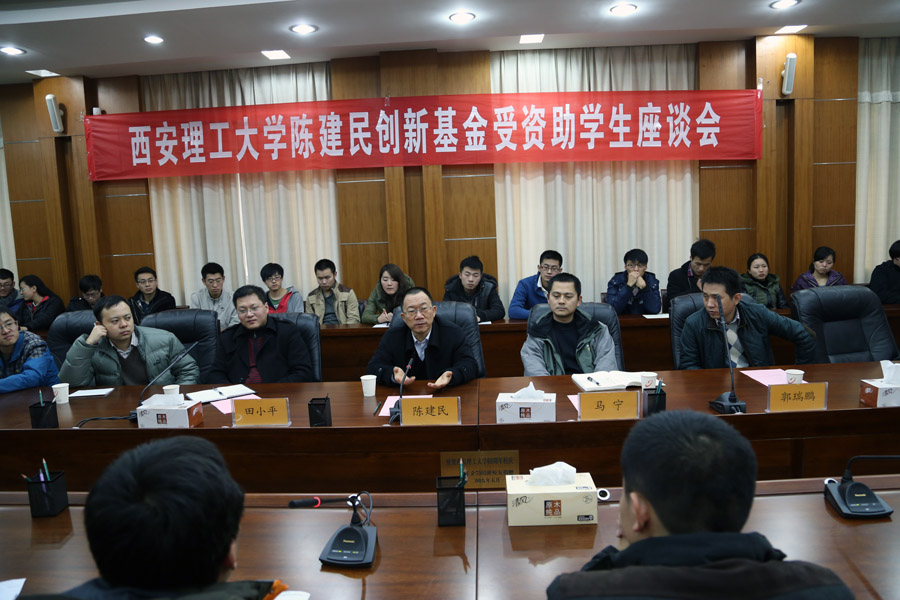 此前,1月5日下午,陈建民校友与 2012年“陈建民大学生创新基金”受资助学生代表进行了座谈。座谈会上,陈建民结合自己创业经历和体会,一一回答了学生在学习、生活和科技创新中的一些困惑。“陈建民大学生创新基金”是在陈建民助学金的基础上,为培养大学生的创新精神和实践能力,鼓励、支持大学生尽早参与科学研究、技术开发和社会实践等创新活动,陈建民校友2012年出资6万元,以“培养能力、鼓励创新、突出重点、注重实效”为原则,在我校全体本科生中设立了“大学生创新基金”,共资助我校2-3年级全日制本科生开展创新科研项目57项。