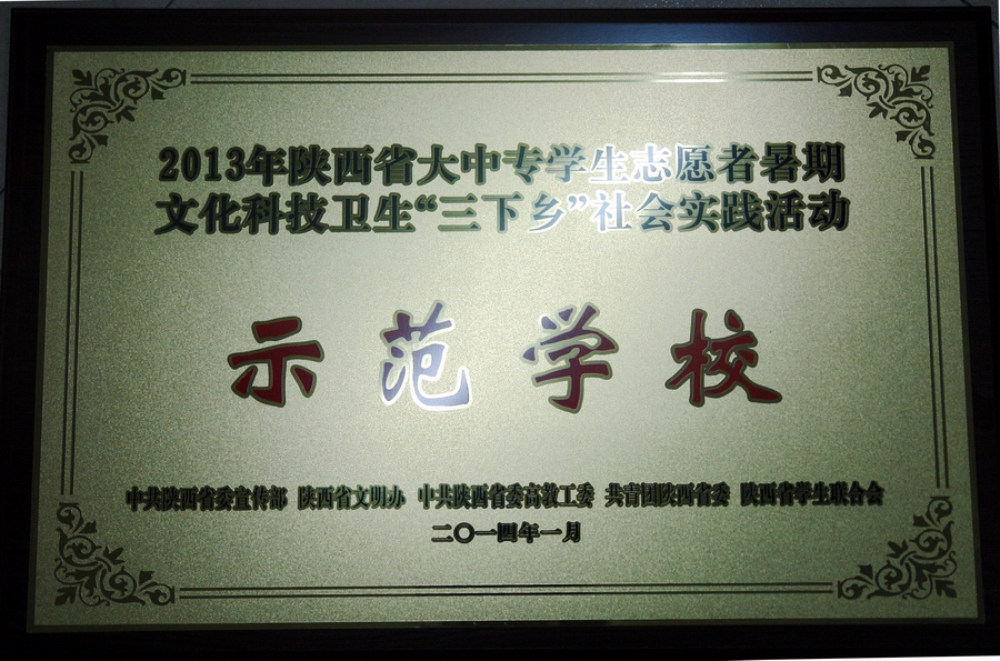 2011年以来我校第二次被授予“陕西省大中专学生志愿者暑期文化科技卫生‘三下乡’社会实践活动示范学校”称号