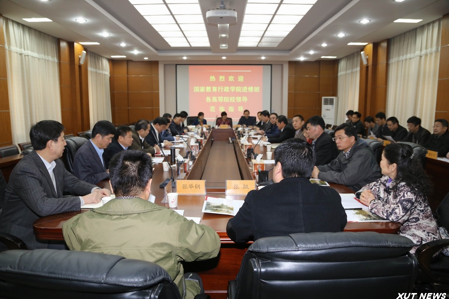 3月21日,国家教育行政学院第四十五期高校领导进修班一行18人访问我校。我校党委书记周孝德、党委副书记崔亦国、纪委书记李建竹、副校长张淼丰、刘军、许云华、总会计师赵明扬与来宾在101会议室进行了亲切座谈交流,张淼丰副校长主持座谈会。