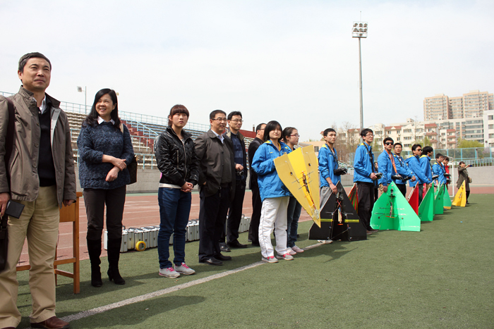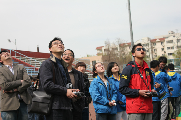 由清华大学、北京大学、西南交通大学、西北工业大学等全国高校的领导、老师组成的参观团,在工程训练中心张晓辉主任的陪同下观看了航模表演,校航模队带队教师侯浩录为来宾进行了解说。校航模队向参观团展示了腰推飞机、三角翼飞机、电动滑翔机、垂直起降载运飞机的精彩飞行以及3D机的特技表演,作为压轴节目的十余架纸飞机的同时升空更使来宾连连称赞。之后航模队队员还展示了电脑上的模拟飞行,兴趣盎然的来宾也尝试了模拟器的飞行和真实飞机的飞行。