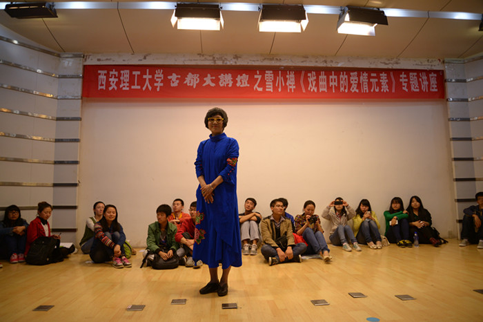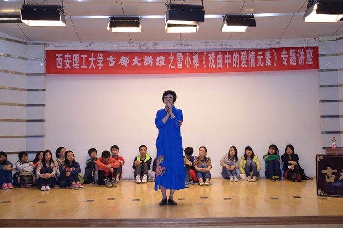 讲座最后,雪小禅现场献声演唱京剧《春秋亭》选段,现场高潮迭起。最后一个环节,雪小禅以答疑在场同学关于爱情的问题的形式点燃了同学们的热情,会场传来的欢呼声此起彼伏。雪小禅激动地表示,她所去过举办讲座的六十几所高校中,没有一所大学的气场像西安理工大学一样让她觉得应付不了,并以“感时花溅泪,恨别鸟惊心”一诗表达她对西安理工大学的喜爱和留恋之情。