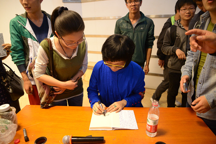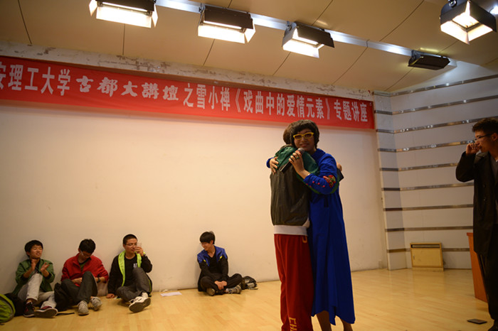 讲座伊始,雪小禅讲述了《五典坡》、《长恨歌》、《牡丹亭》等著名戏曲,通过分析王宝钏与薛平贵,杨玉环与李隆基,杜丽娘与柳梦梅的爱情故事为同学们解说真正的爱情果实,鼓励同学们勇敢追求真爱,理性对待爱情。期间,雪小禅与我校一名研一的学生一同演唱京剧《武家坡》选段,博得场下阵阵喝彩。接下来,雪小禅与在场同学互动,现场调查同学们对戏曲名家裴艳玲和国画大师黄永玉的了解程度,当得知我校有关注戏曲、了解名家名段的同学时,雪小禅深感意外,并直言要为西安理工大学生点3200个赞。当谈及自己曾经的作品,她说:“我的青春文学陪伴了大家的年少光阴,我现在希望我的文化随笔能带领大家一起成长,见证人生中的光芒和挫折,与大家一起印证光辉岁月!”