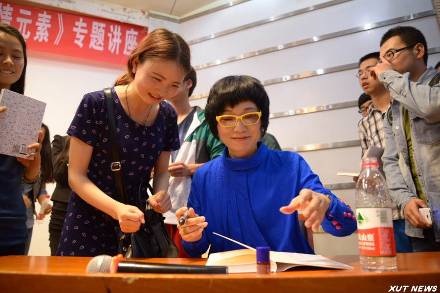 报告会后,雪小禅以“感时花溅泪,恨别鸟惊心”一诗表达她对西安理工大学学生的喜爱和留恋之情。最后,雪小禅与现场的学生举行了签书、签名及赠书活动。