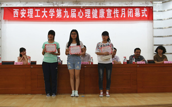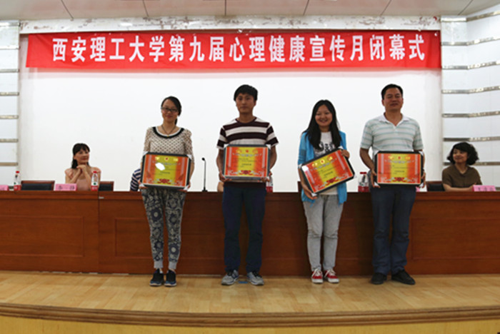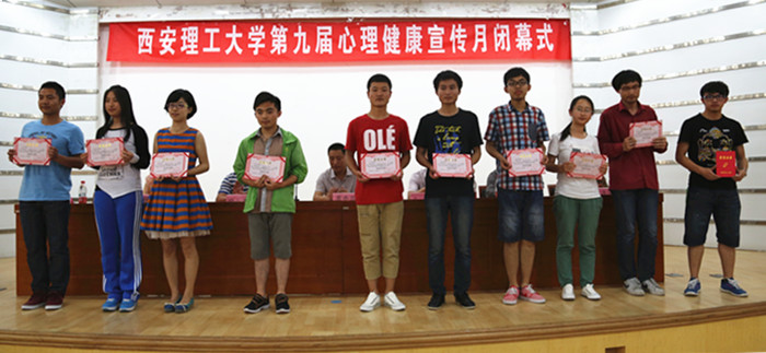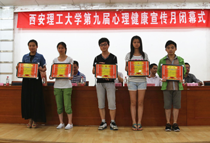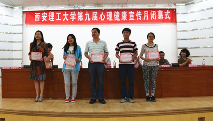 活动伊始,全场400多位来自各个学院的团委书记和学生代表一同观看了由我校心理健康中心监制的视频短片《心理健康操》,以及精选的主题班会MV。接着,大会播放了《西安理工大学第九届心理健康宣传月》宣传片,展示了活动的前期宣传、活动内容、心理健康主题班会、心情故事征文大赛、名人主题报告会等内容。随后,马宁处长总结。田小平书记宣读了《西安理工大学第九届心理健康教育宣传月活动先进集体和个人表彰决定》。自动化与信息工程学院、机械与精密仪器工程学院、水利水电学院、艺术与设计学院获优秀组织奖。陈国强、刘珉曳、卢江涛、马欢、冯娟获2013-2014学年心理健康教育工作先进个人。电气121、机133等15个班级获“感恩生命·乐观生活”优秀心理主题班会班级。《让爱度过浪漫的季节》等11幅作品获“寻找生命中的感动”优秀摄影作品。20篇作品获“感恩生命·乐观生活”征文优秀文章。35个宿舍获“我们温暖的窝”大学生宿舍文化大赛一、二、三等奖。
