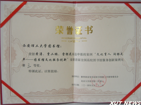 本次大赛由教育部高等学校图书情报工作指导委员会主办,设一、二、三等奖及优秀奖,共收到全国105所高校图书馆提交的156项服务创新案例申报材料。经过25位专家评审,最终32项服务案例获一、二、三等奖。20项获优秀奖,其中陕西省高校获奖共3项,我校占2项。