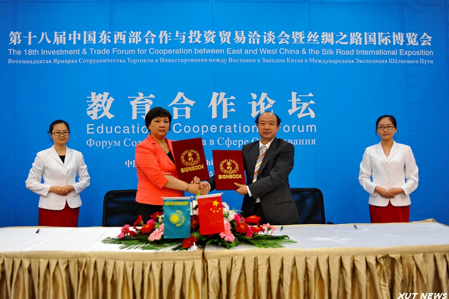 5月24日,我校副校长罗兴锜出席西安曲江国际会议中心参加第十八届中国东西部合作与投资贸易洽谈会暨丝绸之路国际博览会教育合作论坛开幕式,并代表学校与哈萨克斯坦科泽奥尔达国立大学签署了友好合作协议,双方将在交流教学科研信息、学生互换、教师交流、共同研究等方面开展实质性合作。